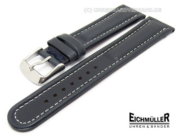 Uhrenarmband XL 20mm dunkelblau wasserfest weiße Naht von Eichmüller (Schließenanstoß 18 mm)