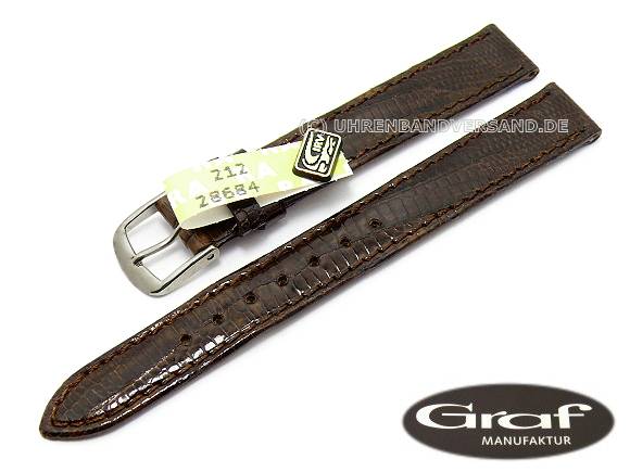 Uhrenarmband "Brazil" 10mm dunkelbraun echt Teju-Eidechse glänzend von Graf (Schließenanstoß 10 mm)