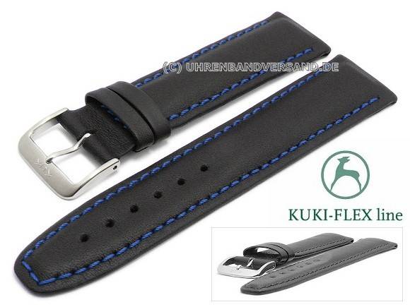 Uhrenarmband L (lang) 22mm schwarz Leder KUKI-FLEX Patent blaue Naht von KUKI (Schließenanstoß 20 mm)