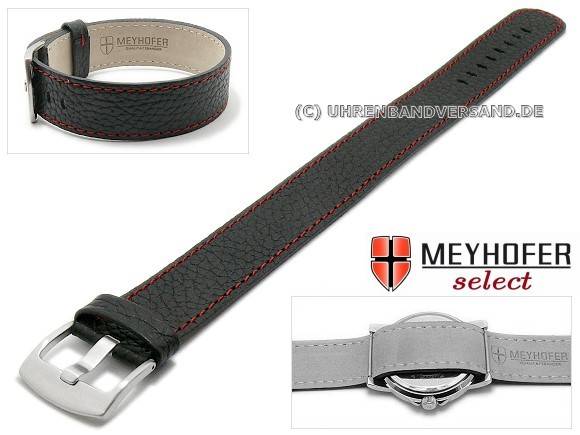 ABVERKAUF: Uhrenarmband "Oslo" 18mm schwarz Leder genarbt rote Naht Durchzugsband von Meyhofer