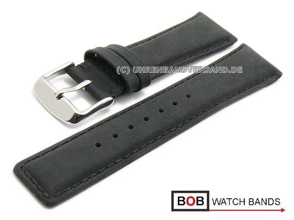 ABVERKAUF: Uhrenarmband 22mm schwarz Vertigo Büffel Nubukleder für IWC abgenäht von BOB (Schließenanstoß 18 mm)