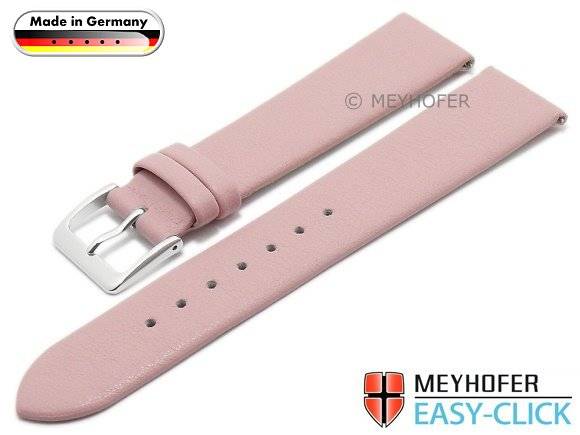 Meyhofer EASY-CLICK Uhrenarmband "Donau" 22mm rosa Leder glatt ohne Naht (Schließenanstoß 18 mm)