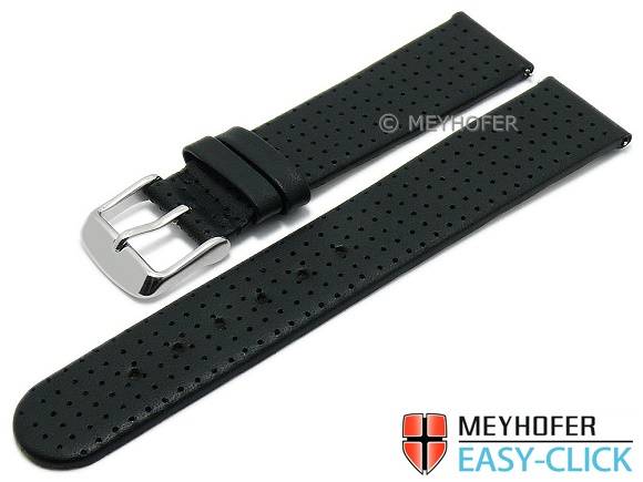 Meyhofer EASY-CLICK Uhrenarmband "Adelaide" 22mm schwarz Leder perforiert matt (Schließenanstoß 20 mm)