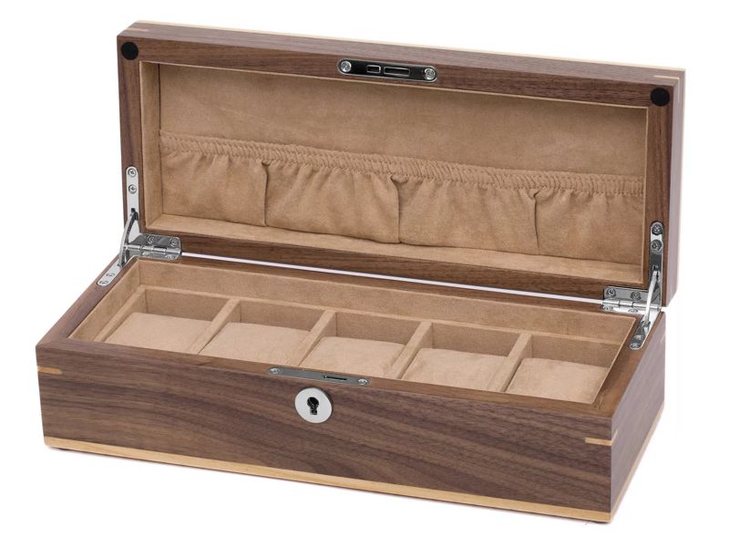 Uhrenbox Wallnuss dunkelbraun/hellbraun matt für bis zu 5 Armbanduhren