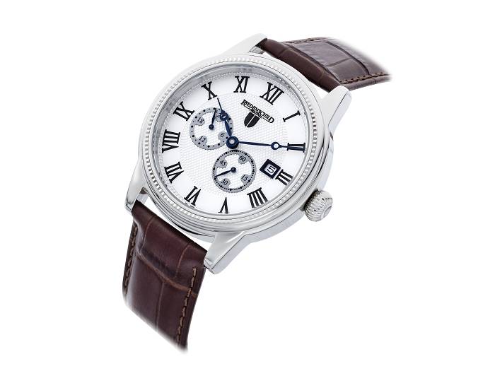 ABVERKAUF: Automatik-Armbanduhr Edelstahl silberfarben Ziffernblatt weiß Lederband von RIEDENSCHILD (*RS*HU*)