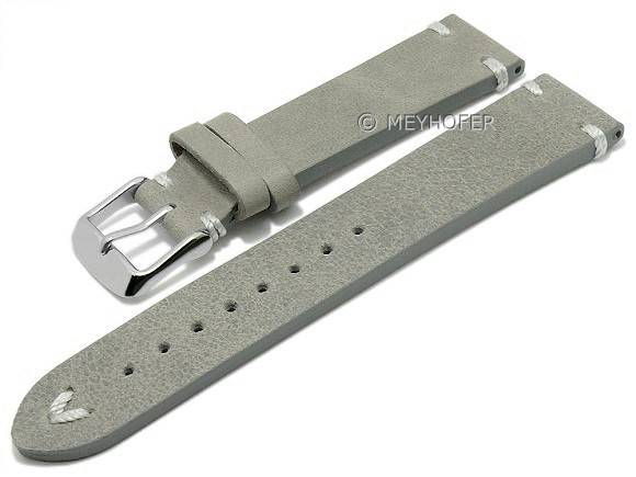 Meyhofer EASY-CLICK Uhrenarmband "Portland" 18mm grau Leder Vintage-Look helle Naht (Schließenanstoß 16 mm)