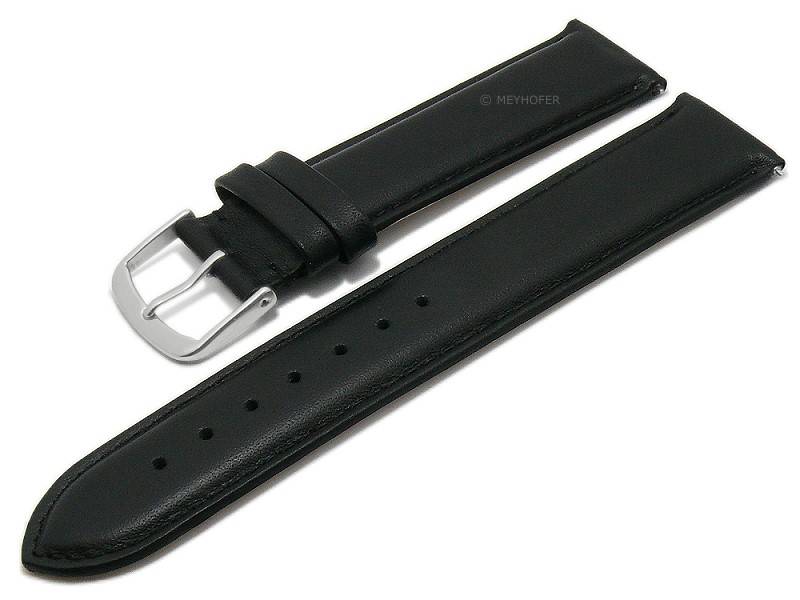 Meyhofer EASY-CLICK Uhrenarmband "Naperville" 17mm schwarz Leder glatt abgenäht (Schließenanstoß 16 mm)