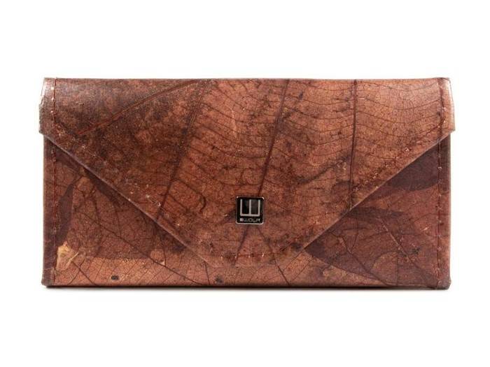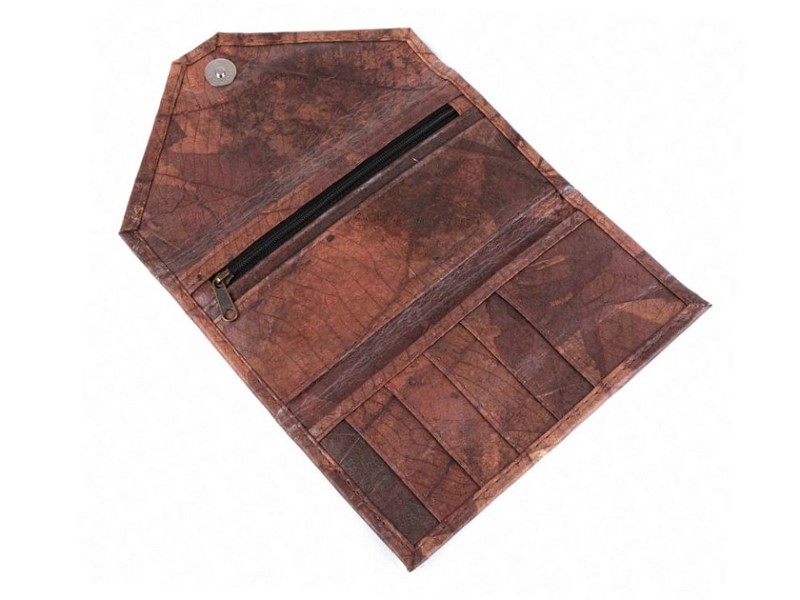 Extravagante Damen-Geldbörse aus nachhaltigem Blatt-Lederimitat mittelbraun VEGAN mit Magnetverschluß