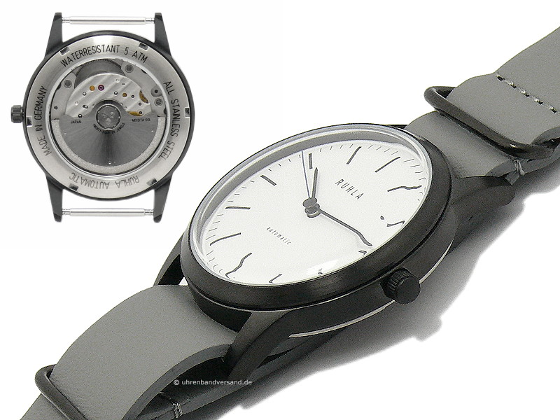1 Automatik-Armbanduhr RUHLA + 2er-Set Uhrenarmbänder NATO BLACK DUO Leder Ziffernblatt weiß  (*GD*AU*) - Bild vergrößern