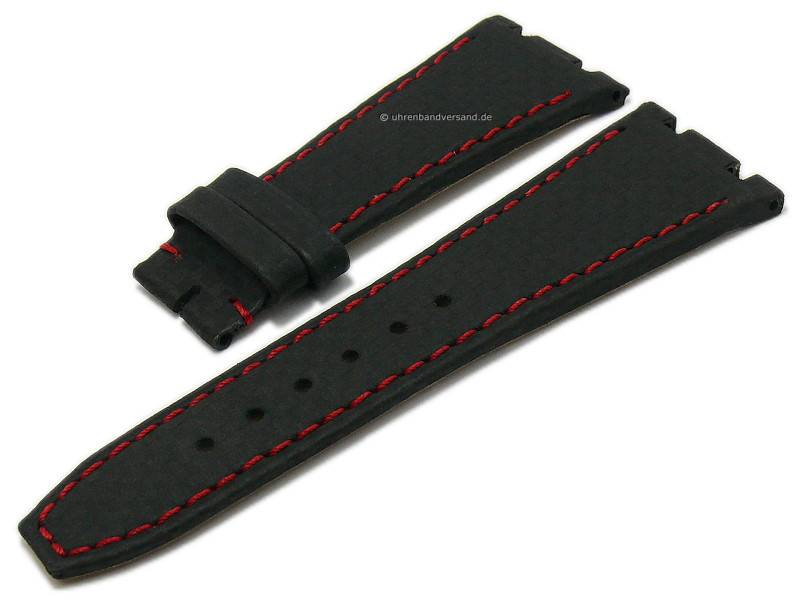 Uhrenarmband 28mm schwarz Leder Karbon-Look rote Naht passend für AUDEMARS PIGUET (Schließenanstoß 18 mm)