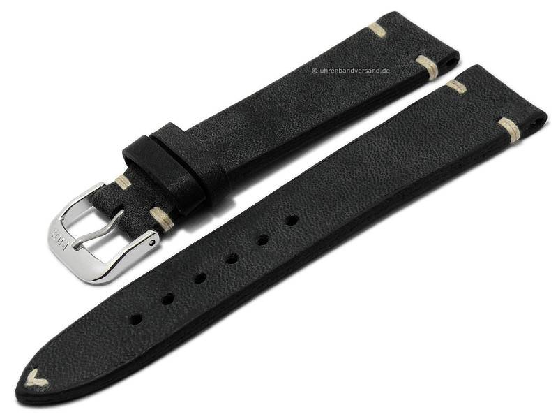 Uhrenarmband "Bedford" 20mm schwarz Leder Vintage-Look helle Naht von RIOS (Schließenanstoß 16 mm)