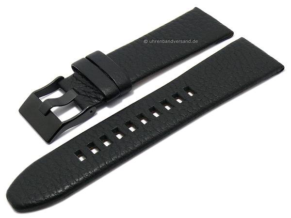 Uhrenarmband 26mm schwarz Leder genarbt matt Schließe schwarz passend für Diesel (Schließenanstoß 24 mm)