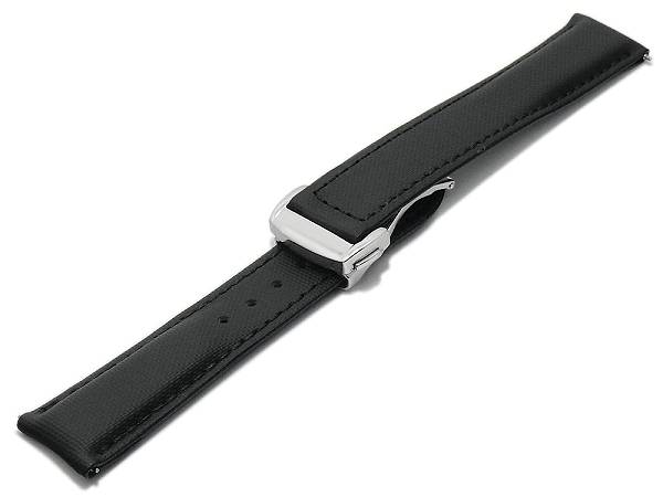 Uhrenarmband 19mm schwarz textilartig Sailcloth Faltschließe mit EASY-CLICK (Schließenanstoß 16 mm)