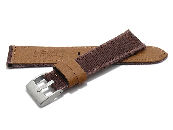 Uhrenarmband "Cleveland" 22mm mittelbraun Jeans-Stoff rustikal Vintage-Look abgenäht (Schließenanstoß 20 mm)